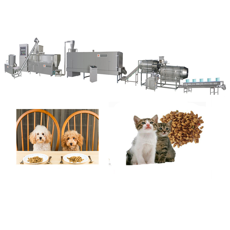 เครื่องอัดรีดอาหารสุนัข ใช้วัตถุดิบหลักเป็นอาหารจากเนื้อสัตว์, อาหารปลา, ผงข้าวโพด, อาหารจากถั่วเหลือง และผงธัญพืชอื่นๆ เพื่อทำอาหารสัตว์เลี้ยง เช่น อาหารสุนัข, แมว, ปลา, นก ฯลฯ ด้วยรูปทรงและรสชาติที่แตกต่างกันโดยการเปลี่ยนแม่พิมพ์และสูตรอาหาร ใช้สกรูร่องวงกลมแบบโมดูลาร์ และโดยการเปลี่ยนลำดับการประกอบสกรู, อัตราส่วนความเรียว